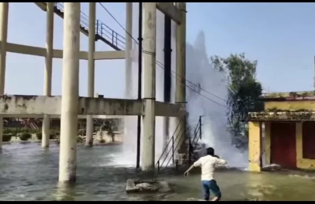 एटा में पानी की टंकी का पाइप फटने से पार्क हुआ जलमग्न