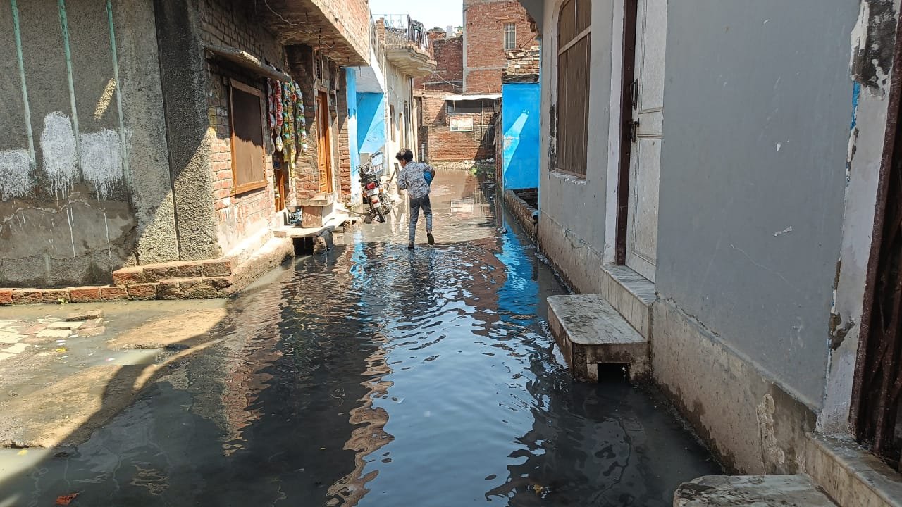 मारहरा दरवाजा गली मोहल्लों में घूम रहा पानी, नगरपालिका हुई अंधी
