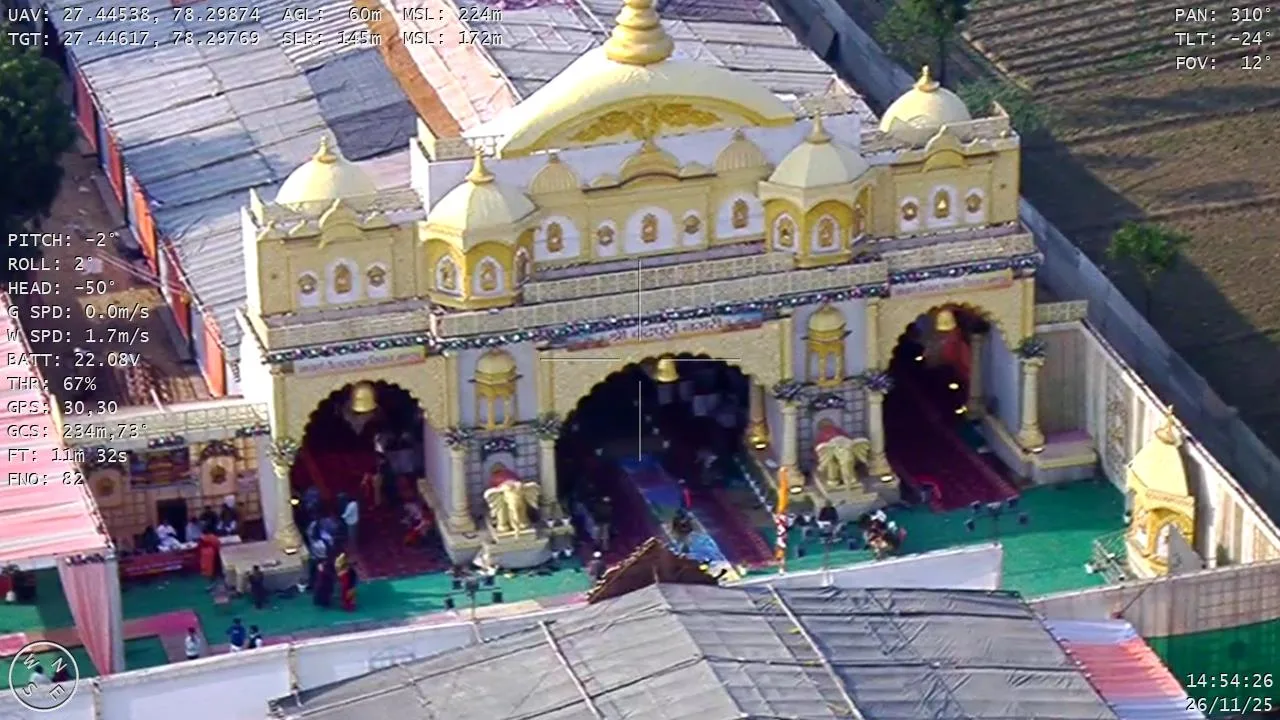 थाना जलेसर क्षेत्रांतर्गत लगे जैन सम्मेलन कोसमा में ड्रोन कैमरे से की गई सुरक्षा व्यवस्था की निगरानी
