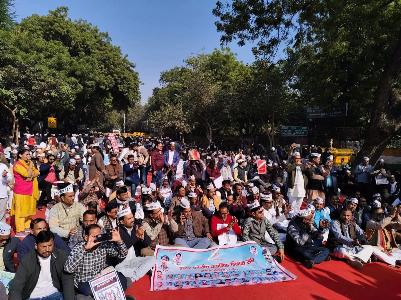 अखिल भारतीय प्राथमिक शिक्षक संघ के पदाधिकारियों ने दिल्ली के जंतर-मंतर पर किया प्रदर्शन