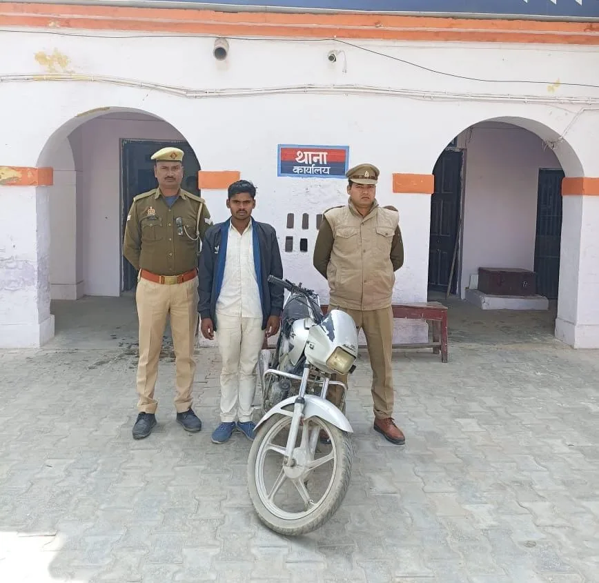 अवागढ़ पुलिस द्वारा चेकिंग के दौरान एक अभियुक्त को चोरी की मोटरसाइकिल सहित किया गया गिरफ्तार