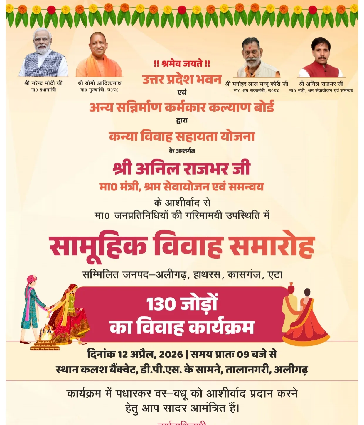 Next Article मंडल स्तरीय सामूहिक विवाह समारोह में 130 जोड़ों का होगा विवाह, एटा जनपद के 27 जोड़े भी होंगे लाभान्वित