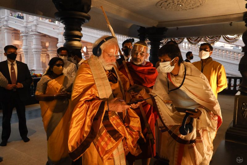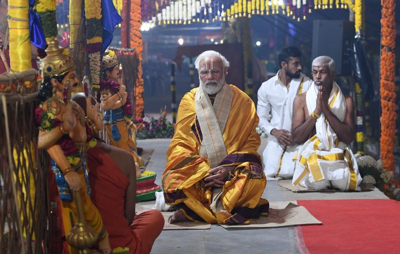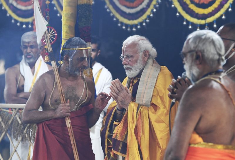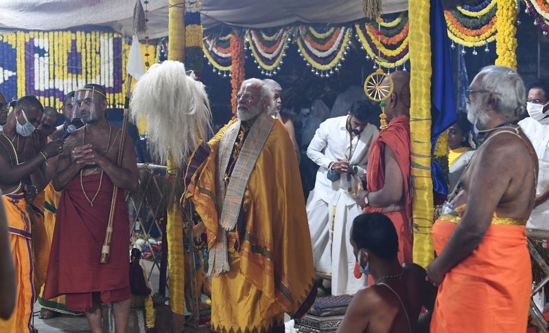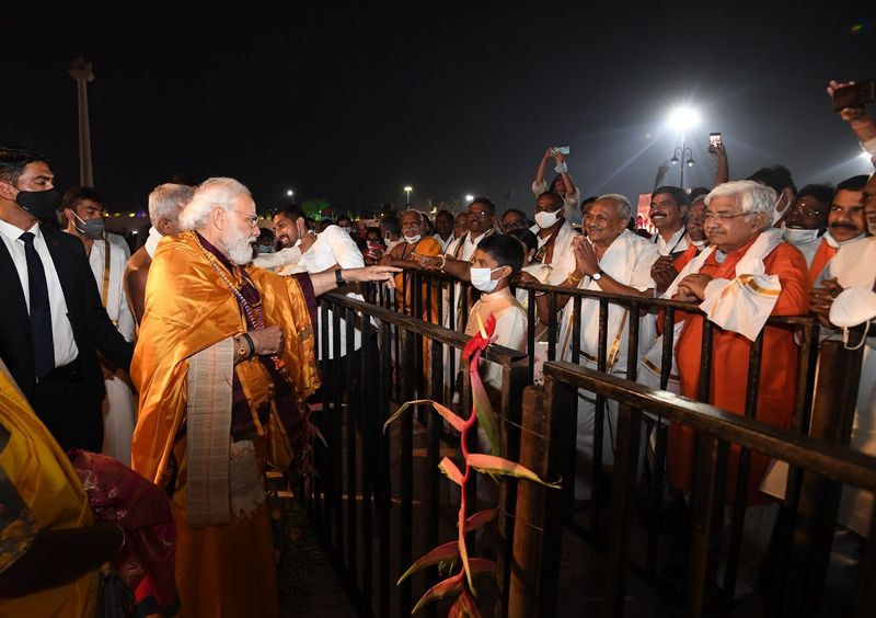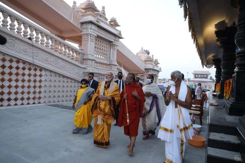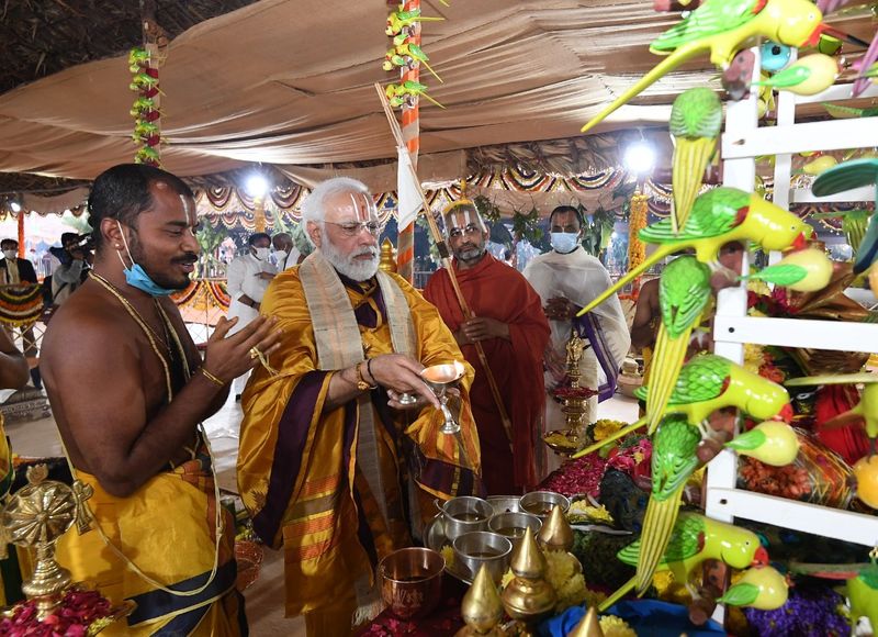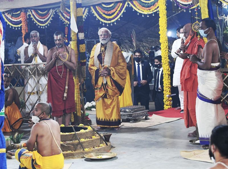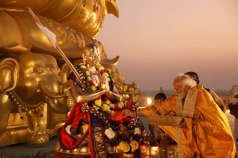 धार्मिक अनुष्ठान के बाद नरेंद्र मोदी ने 11वीं सदी के संत और समाज सुधारक रामानुजाचार्य की 216 फुट ऊंची प्रतिमा का अनावरण कर उसे देश को लोकार्पित किया।