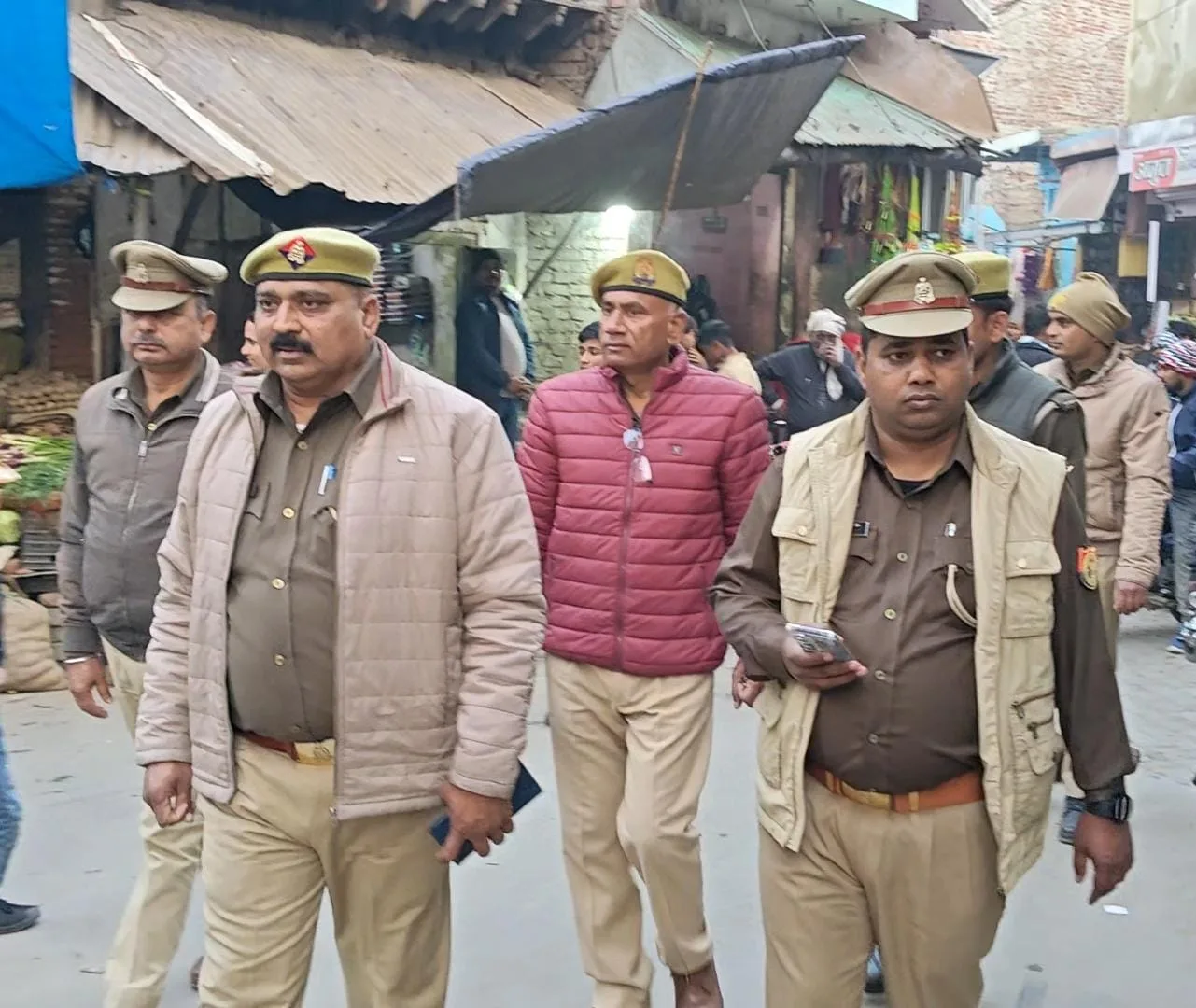 अमाँपुर शांति व्यवस्था को मध्यनजर रखते हुए पुलिस ने किया पैदल मार्च